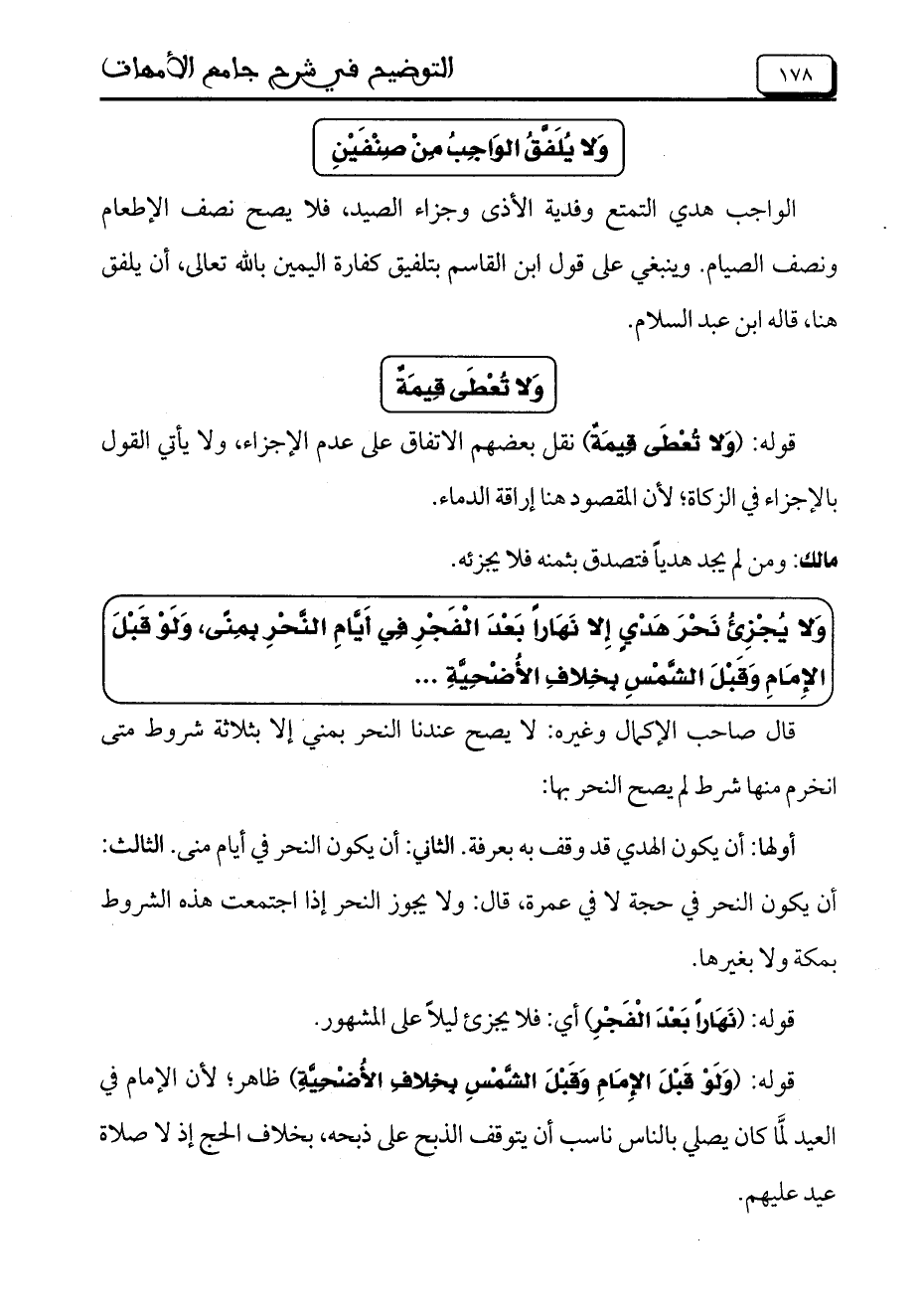 الواجب هدى التمتع وفدية الأذى وجزاء الصيد, فلا يصح نصف الإطعام ونصف الصيام. وينبغى على قول ابن القاسم بتلفيق كفارة اليمين بااله تعالى, أن يلفق هنا, قاله ابن عبد السلام.