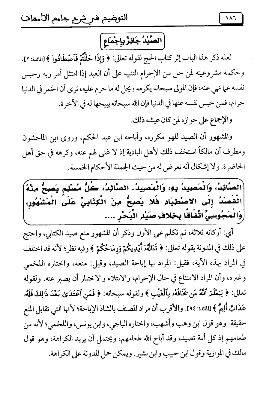 لعله ذكر هذا الباب إثر كتاب الحج لقوله تعالى: (وَإِذَا حَلَلْتُمْ فَاصْطَادُوا ([المائدة:2].