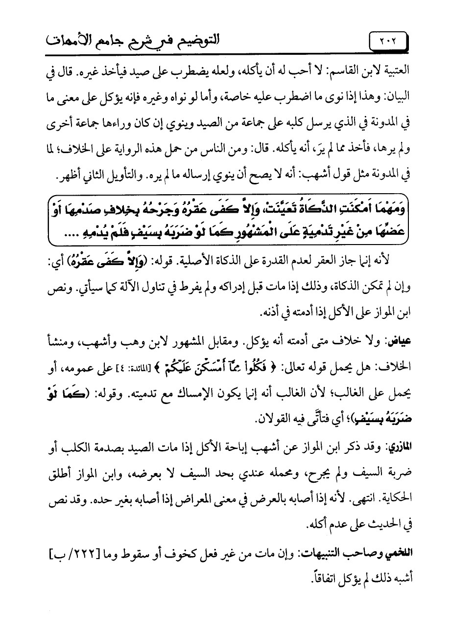 وَمَهْمَا أَمْكَنَتِ الذَّكَاةُ تَعَيَّنَتْ، وَإِلاَّ كَفَى عَقْرُهُ وَجَرْحُهُ بخِلافِ صَدْمِهَا أَوْ عَضِّهَا مِنْ غَيْرِ تَدْمِيَةٍ عَلَى الْمَشْهُورِ كَمَا لَوْ ضَرَبَهُ بسَيْفٍ فَلَمْ يُدْمِهِ ...