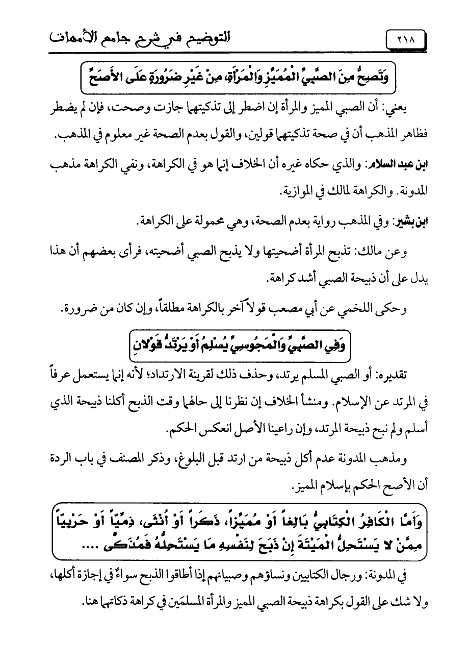 في المدونة: ورجال الكتابيين ونساؤهم وصبيانهم إذا أطاقوا الذبح سواءٌ في إجازة أكلها، ولا شك على القول بكراهة ذبيحة الصبي المميز والمرأة المسلمَين في كراهة ذكاتهما هنا.