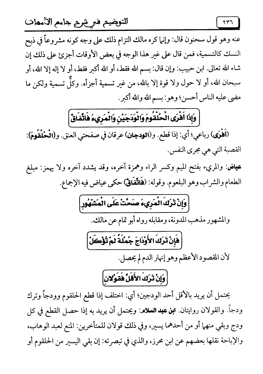 وَإّذَا أَفْرَى الْحُلْقُومَ وَالْوَدَجَيْنِ وَالْمَرِيءَ فَاتِّفَاقٌ