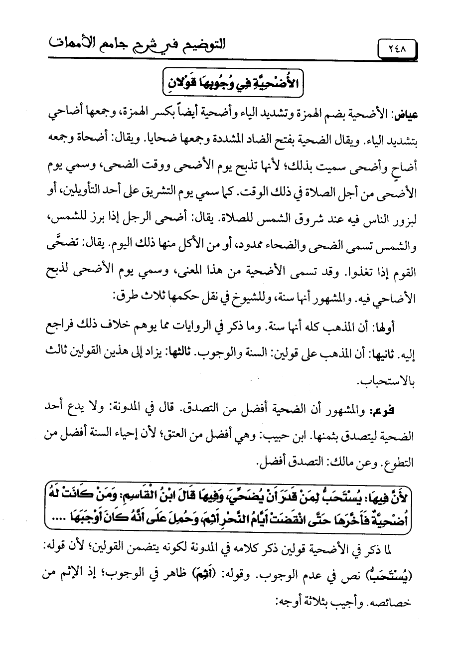 الأُضْحِيَّةِ فِي وُجُوبِهَا قَوْلانِ