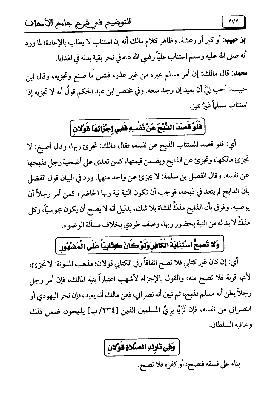 محمد: قال مالك: إن أمر مسلم غيره من غير عذر، فبئس ما صنع وتجزيه، وقال ابن حبيب: أحب إليَّ أن يعيد إن وجد سعة. وفي مختصر ابن عبد الحكم قولُ أنه لا تجزيه إذا استناب مسلماً غيرُ مميز.
