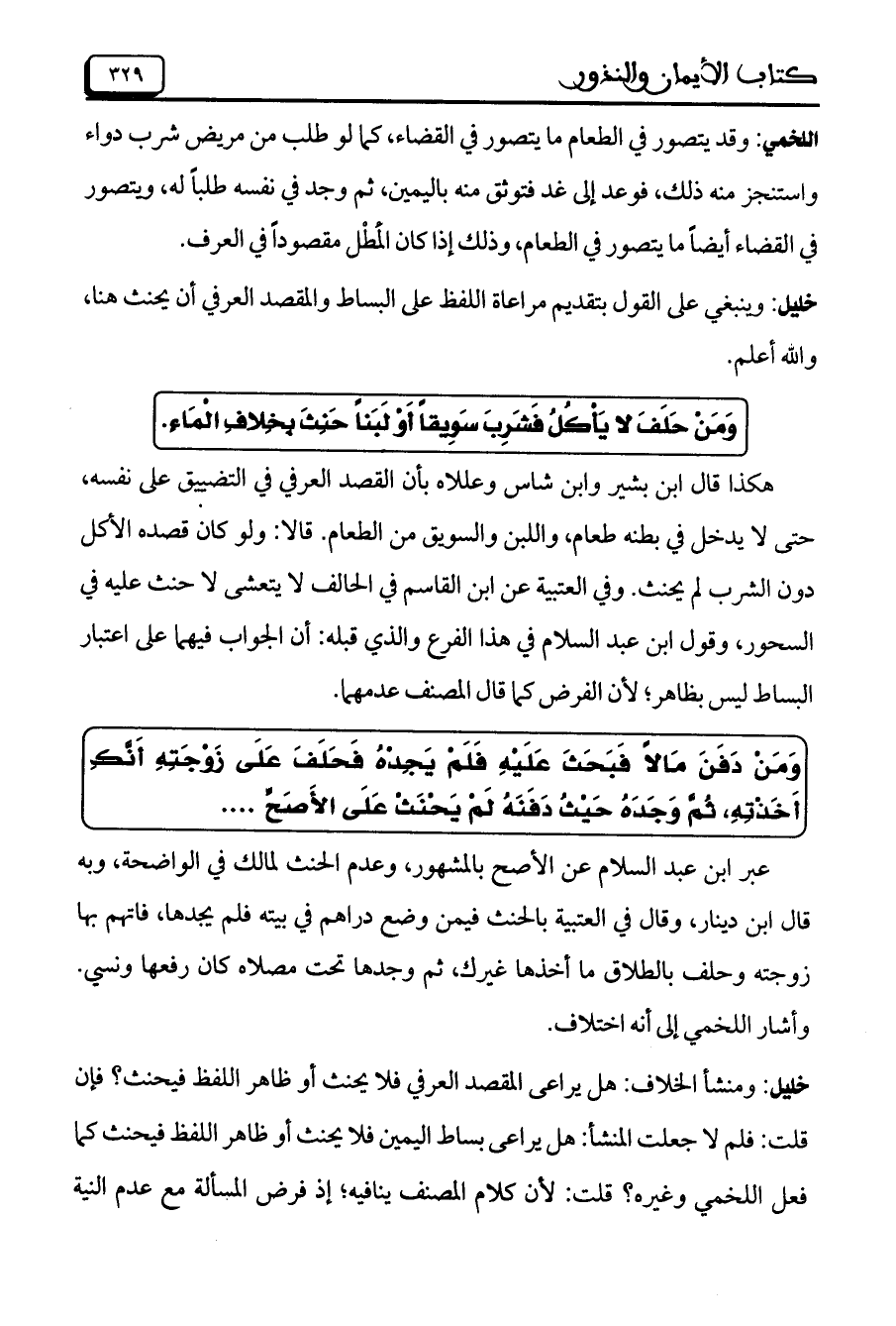 خليل: وينبغي على القول بتقديم مراعاة الفظ على البساط والمقصد العرفي أن يحنث هنا، والله أعلم.