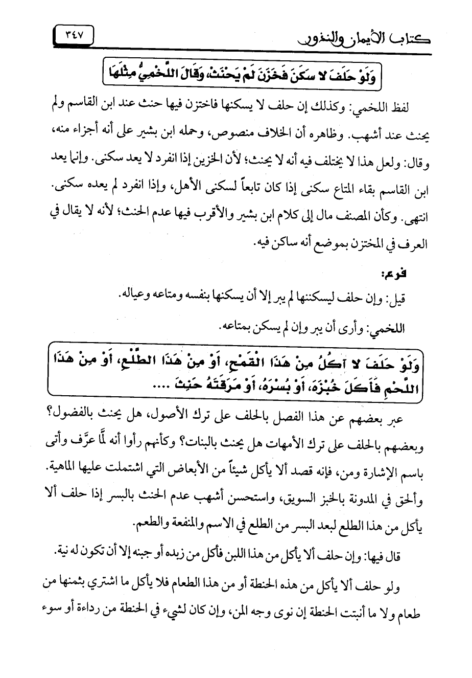 لفظ اللخمي: وكذلك إن حلف لا يسكنها فاختزن فيها حنث عند ابن القاسم ولم يحنث عند أشهب. وظاهره أن الخلاف منصوص، وحمله ابن بشير على أنه أجزاء منه، وقال: ولعل هذا لا يختلف فيه أنه لا يحنث؛ لأن الخزين إذا انفرد لا يعد سكنى. وإنما يعد ابن القاسم بقاء المتاع سكنى إذا كان تابعا ًلسكنى الأهل، وإذا انفرد لم يعده سكنى. انتهى. وكأن المصنف مال إلى كلام ابن بشير والأقرب فيها عدم الحنث؛ لأنه لا يقال في العرف في المختزن بموضع أنه ساكن فيه.