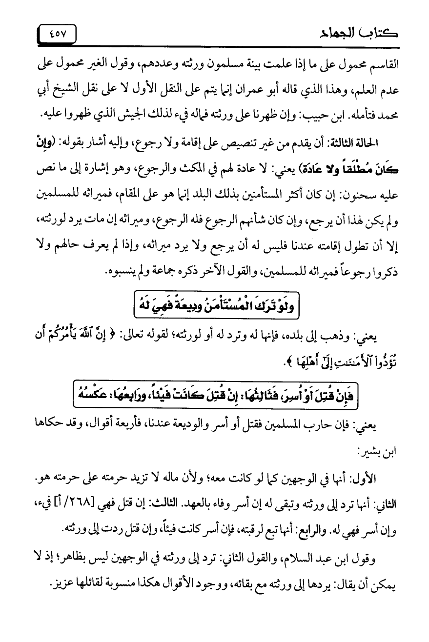 القاسم محمول على ما إذا علمت بينة مسلمون ورثته وعددهم، وقول الغير محمول على عدم العلم، وهذا الذي قاله أبو عمران إنما يتم على النقل الأول لا على نقل الشيخ أبي محمد فتأمله. ابن حبيب: وإن ظهرنا على ورثته فماله فيء لذلك الجيش الذي ظهروا عليه.