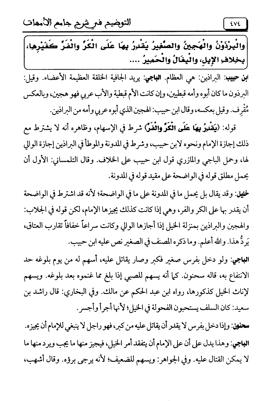 والْبِرْذَوْنُ والْهَجِينُ والصَّغِيرُ يَقْدِرُ بِهَا عَلَى الْكَرِّ والْفَرِّ كَغَيْرِهِا، بِخِلافِ الإِبِلِ، والْبِغَالُ والْحَمِيرُ .....