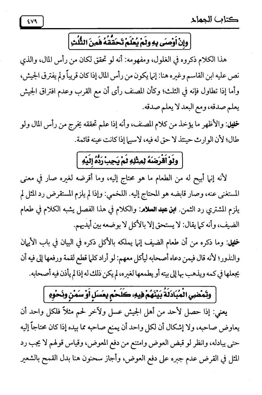 هذا الكلام ذكروه في الغلول، ومفهومه: أنه لو تحقق لكان من رأس المال، والذي نص عليه ابن القاسم وغيره هنا: إنما يكون من رأس المال إذا كان قريباً ولم يفترق الجيش، وأما إذا تطاول في الثلث؛ وكأن المصنف رأى أن مع القرب وعدم افتراق الجيش يعلم صدقه، ومع البعد لا يعلم صدقه.