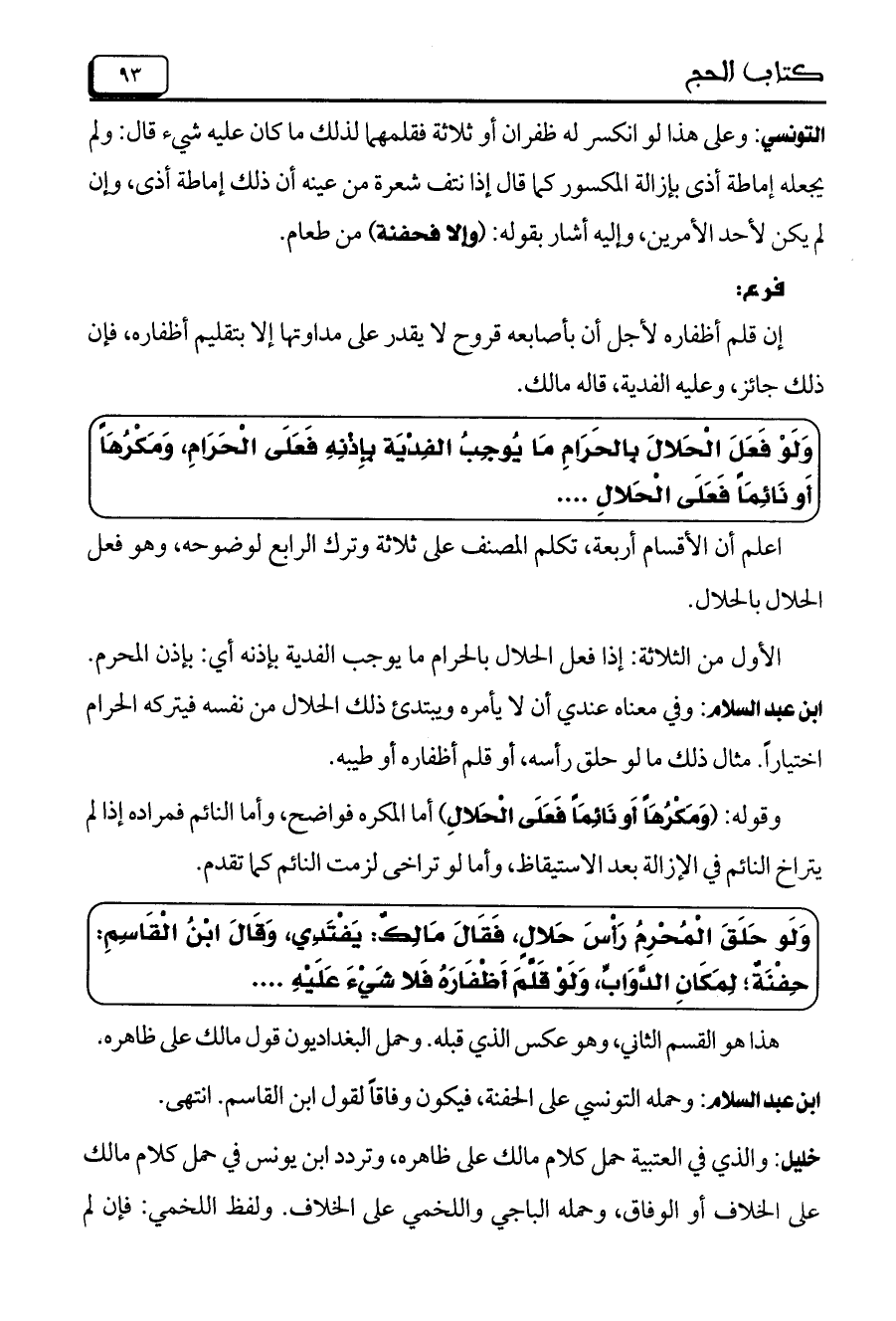 إن قلم أظفاره لأجل أن بأصابعه قروح لا يقدر على مداواتها إلا بتقليم أظفاره، فإن ذلك جائز، وعليه الفدية، قاله مالك.
