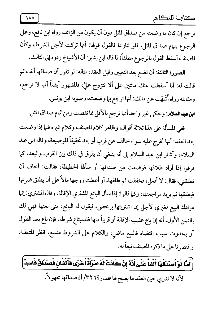 الصورة الثالثة: أن تضع بعد التعيين وقبل العقد، مثاله: لو تقرر أن صداقها ألف ثم قالت له: أنا أسقطت عنك مائتين على ألا تتزوج عليَّ، فالمشهور أيضاً أنها لا ترجع، ومقابله رواه أشهب عن مالك: أنها ترجع بما وضعت، وصوبه ابن يونس.