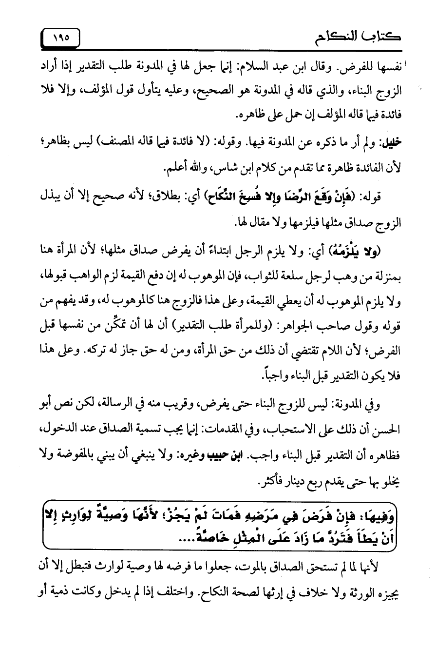 نفسها للفرض. وقال ابن عبد السلام: إنما جعل لها في المدونة طلب التقدير إذا أراد الزوج البناء، والذي قاله في المدونة هو الصحيح، وعليه يتأول قول المؤلف، وإلا فلا فائدة فيما قاله المؤلف إن حمل على ظاهره.