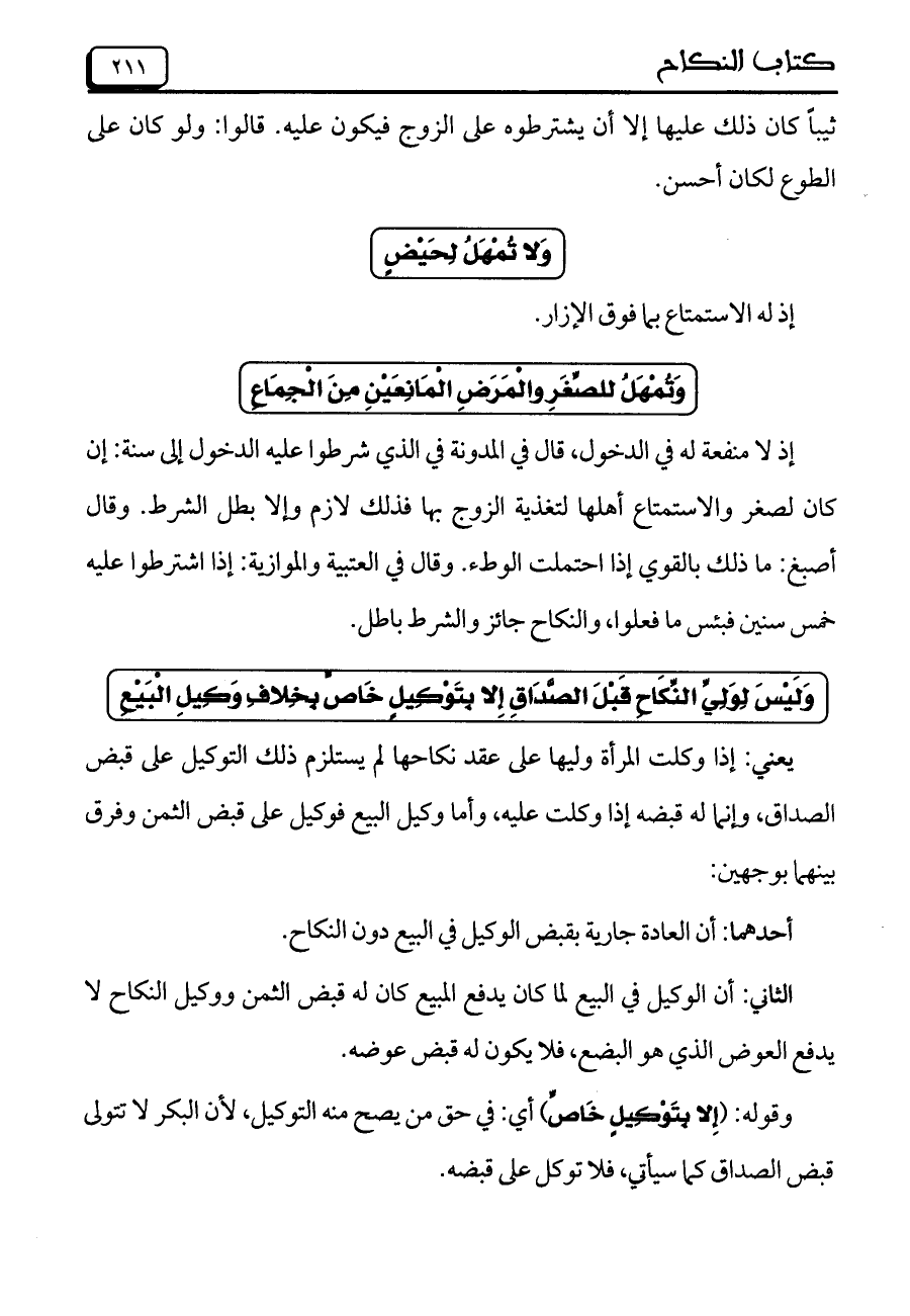 وَلَيْسَ لِوَلِيِّ النِّكَاحِ قَبْلَ الصَّدَاقِ إِلا بِتَوْكِيلٍ خَاصٍ بِخِلافِ وَكِيلِ الْبَيْعِ
