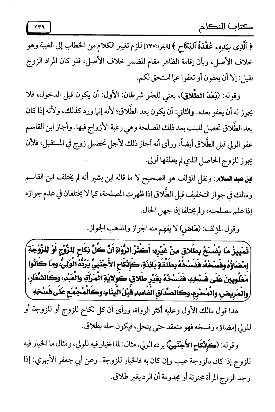 ابن عبد السلام: ونقل المؤلف هو الصحيح لا ما قاله ابن بشير أنه لم يختلف ابن القاسم ومالك في جواز التخفيف قبل الطلاق إذا ظهرت المصلحة، كما لا يختلفان في عدم جوازه إذا علم مصلحته، ولم يختلفا إذا جهل الحال.