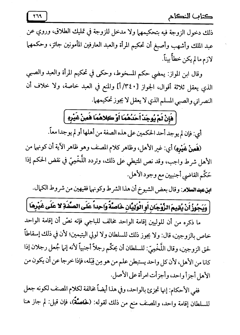ابن عبد السلام: وقال بعض الشيوخ أن هذا الشرط وكونهما فقيهين من شروط الكمال.