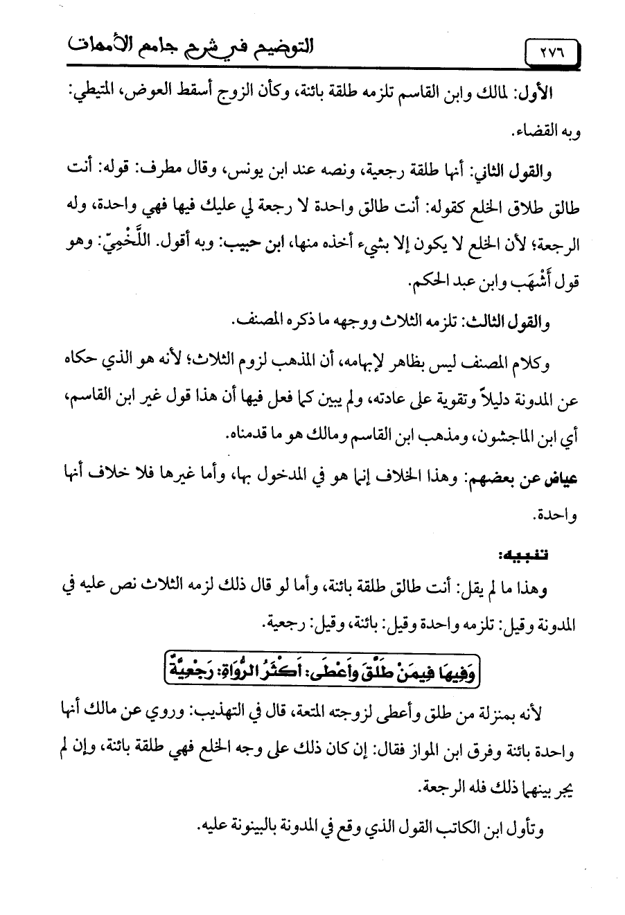 وَفِيهَا فِيمَنْ طَلَّقَ وأَعْطَى: أَكْثَرُ الرُّوَاةِ: رَجْعِيَّةُ