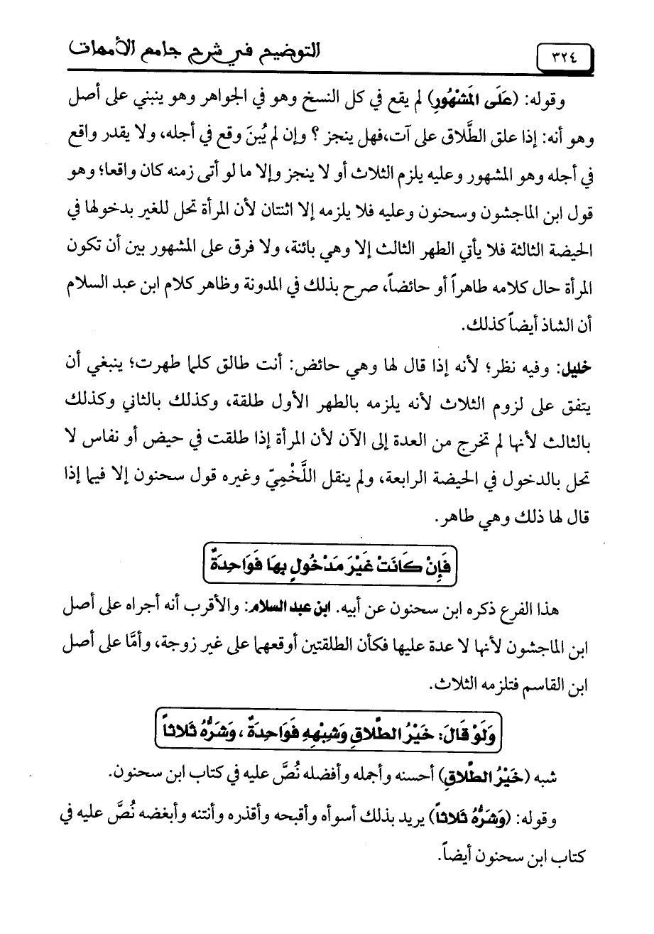 شبه (خَيْرُ الطَّلاقِ) أحسنه وأجمله وأفضله نص عليه في كتاب ابن سحنون.