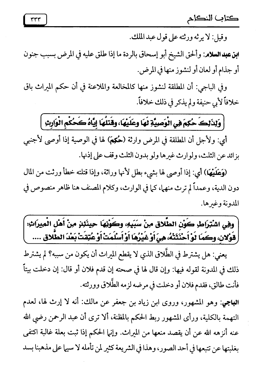 ابن عبد السلام: وألحق الشيخ أبو إسحاق بالردة ما إذا طلق عليه في المرض بسبب جنون أو جذام أو لعان أو لنشوز منها في المرض.