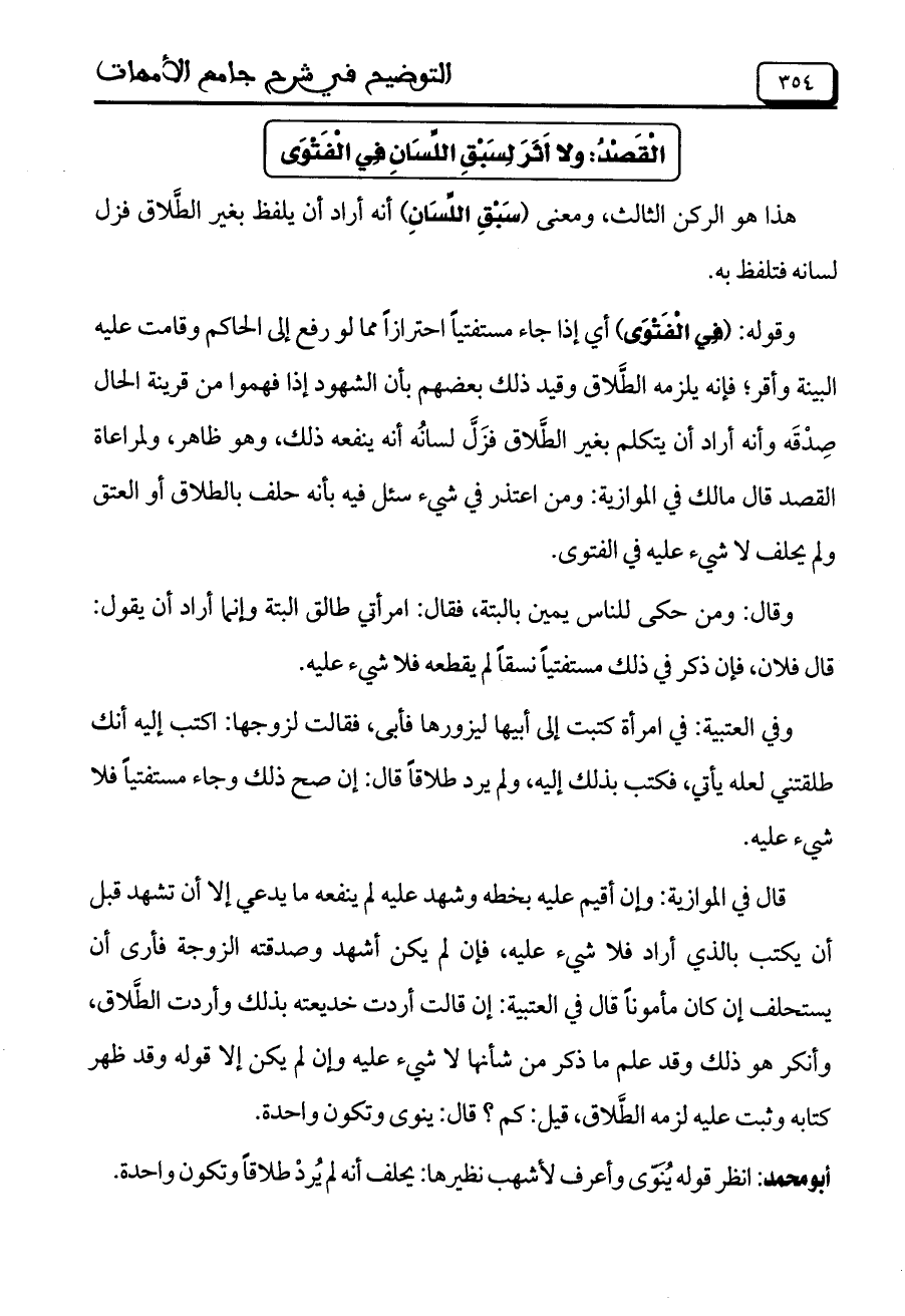 الْقَصْدُ: ولا أَثَرَ لِسَبْقِ اللِّسَانِ فِي الْفَتْوَى