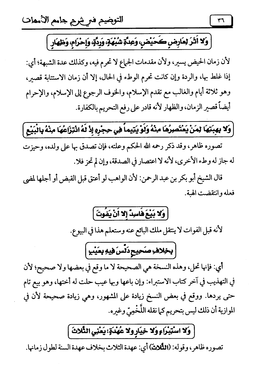 وَلا اسْتِبْرَاءٍ وَلا خِيَارٍ ولا عُهْدَةٍ؛ يَعْنِي الثَّلاثَ