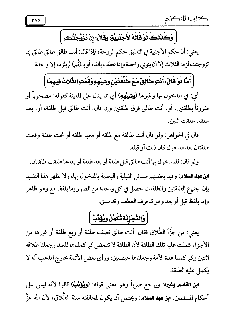 ابن عبد السلام: وقيد بعضهم مسائل القبلية والبعدية بالمدخول بها، ولا يظهر هذا التقييد بإن اجتماع الطلقتين والطلقات حصل في كل واحدة من الصور إما بلفظ مع وهو ظاهر وإما بلفظ قبل أو بعد وهو كحرف العطف وقد سبق.