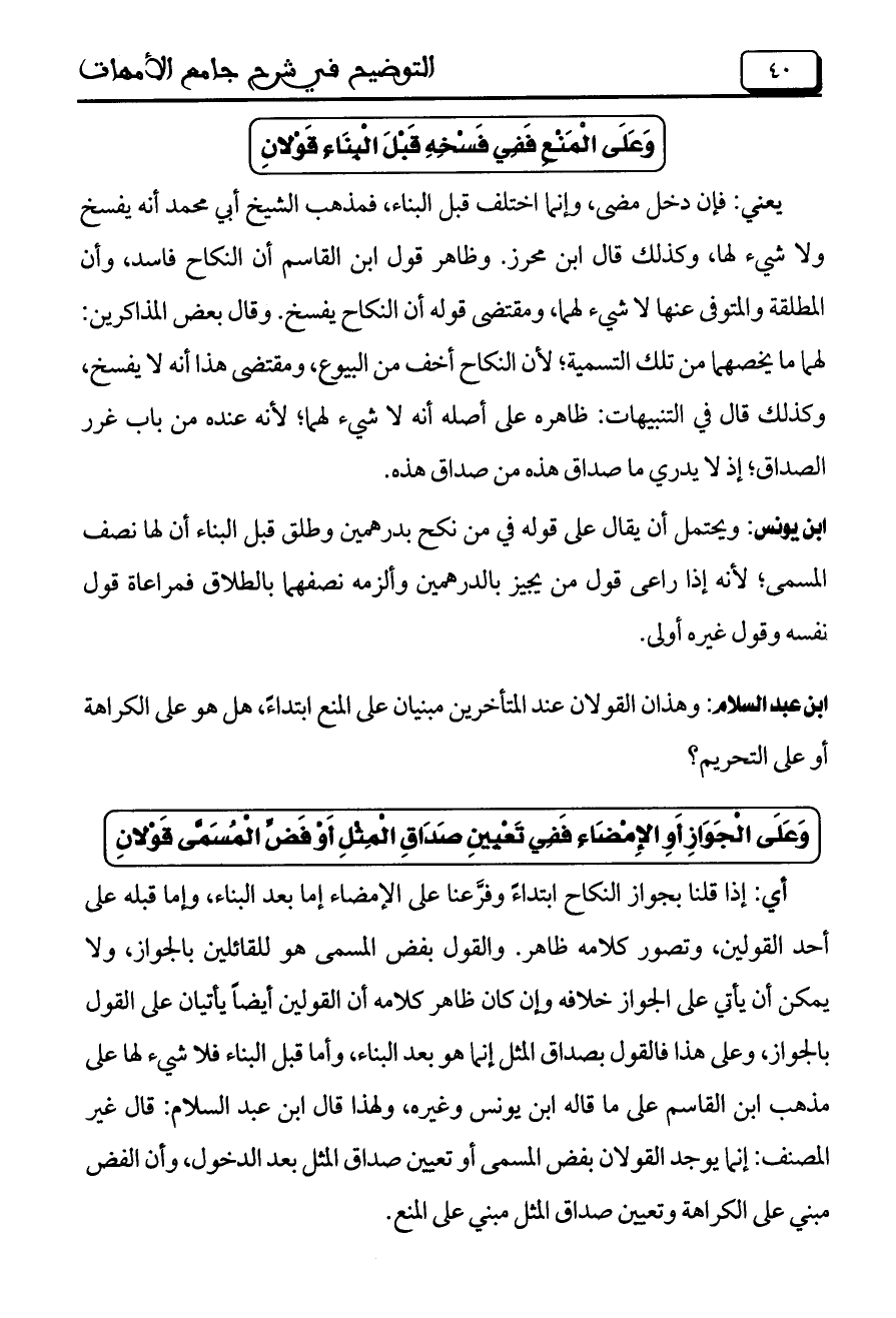 ابن عبد السلام: وهذان القولان عند المتأخرين مبنيان على المنع ابتداءً، هل هو على الكراهة أو على التحريم؟