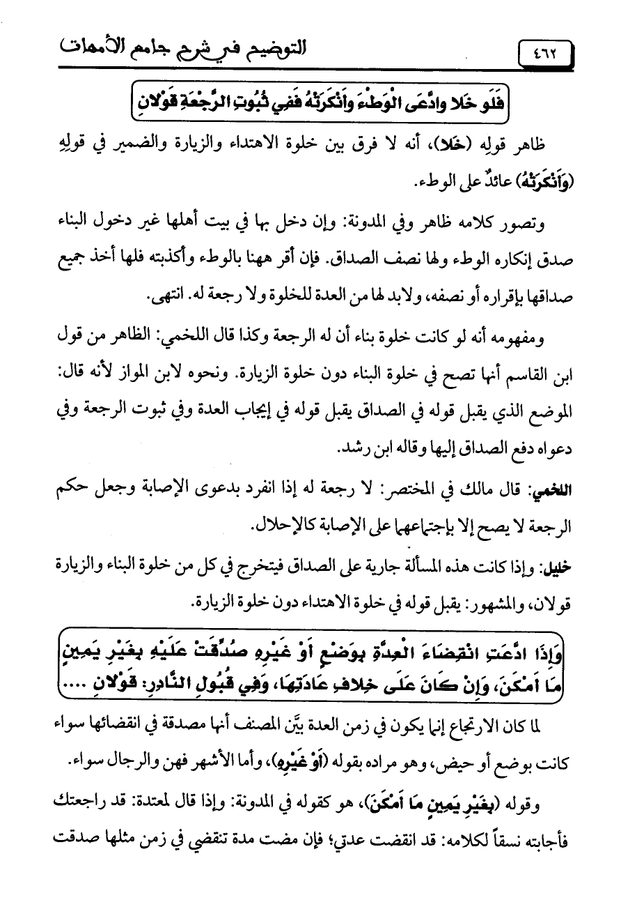 خليل: وإذا كانت هذه المسألة جارية على الصداق فيتخرج في كل من خلوة البناء والزيارة قولان، والمشهور: يقبل قوله في خلوة الاهتداء دون خلوة الزيارة.
