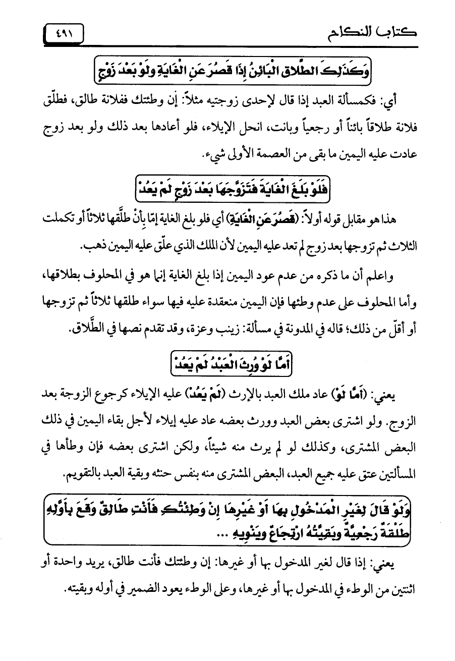 وَكَذَلِكَ الطَّلاق الْبَائِنْ إِذَا قَصُرَ عَنِ الْغَايَةِ ولَوْ بَعْدَ زَوْجٍ
