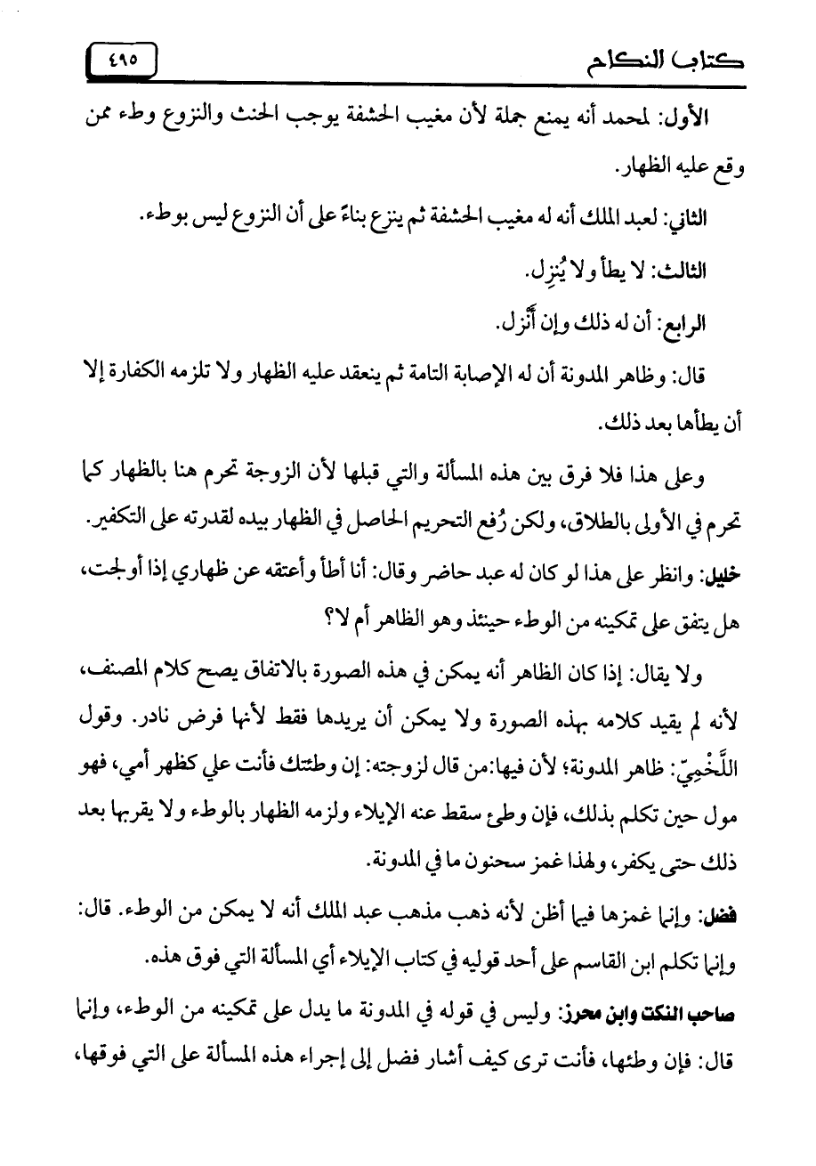 صاحب النكت وابن محرز: وليس في قوله في المدونة ما يدل على تمكينه من الوطء، وإنما قال: فإن وطئها، فأنت ترى كيف أشار فضل إلى إجراء هذه المسألة على التي فوقها،