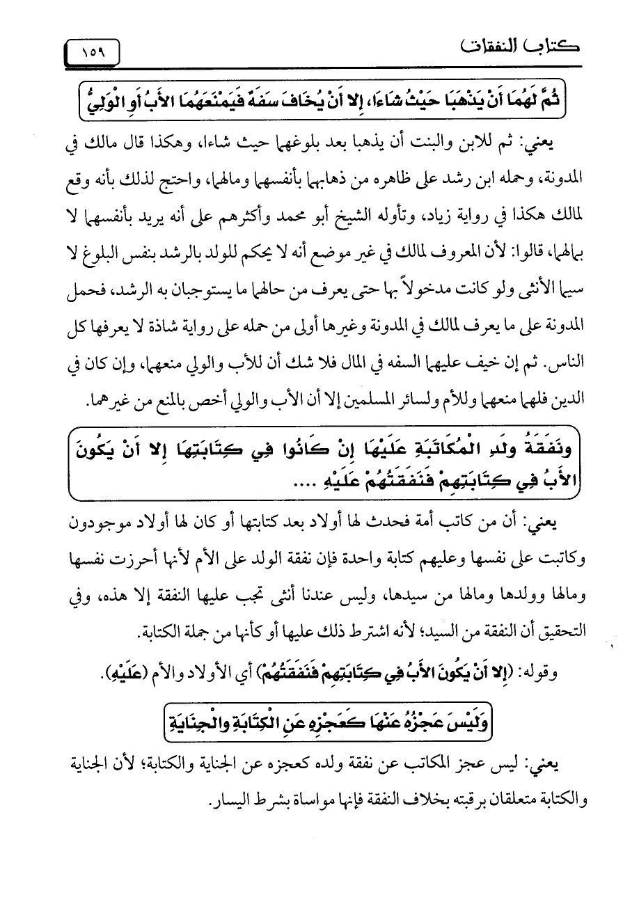 ونَفَقَةُ ولَدِ الْمُكَاتَبَةِ عَلَيْهَا إِنْ كَانُوا فِي كِتَابَتِهَا إِلا أَنْ يَكُونَ الأَبُ فِي كِتَابَتِهِمْ فَنَفَقَتُهُمْ عَلَيْهِ ....