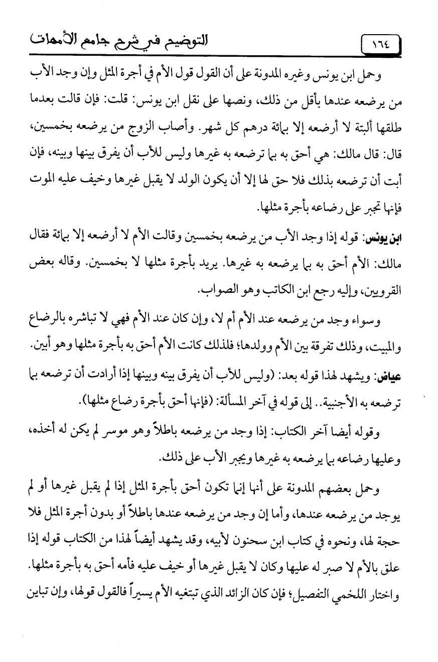 عياض: ويشهد لهذا قوله بعد: (وليس للأب أن يفرق بينه وبينها إذا أرادت أن ترضعه بما ترضعه به الأجنبية ... إلى قوله في آخر المسألة: (فإنها أحق بأجرة رضاع مثلها).