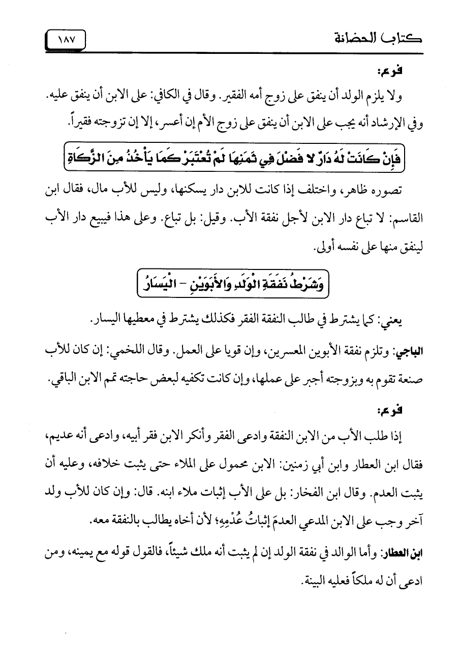 وشرط نفقة الولد والأبوين- اليسار