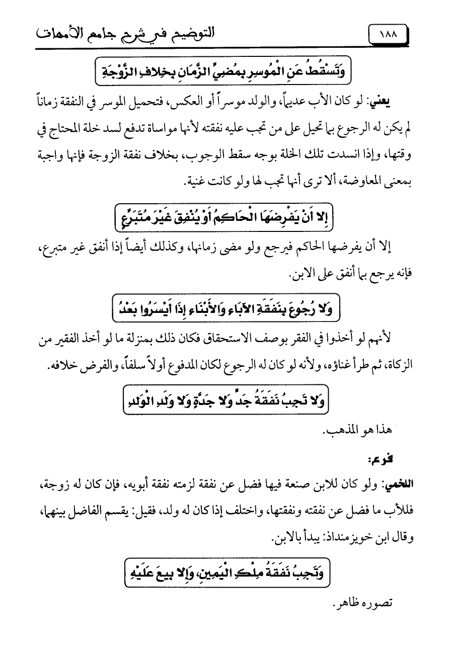 ولا رجوع بنفقة الآباء والأبناء إذا أيسروا بعد