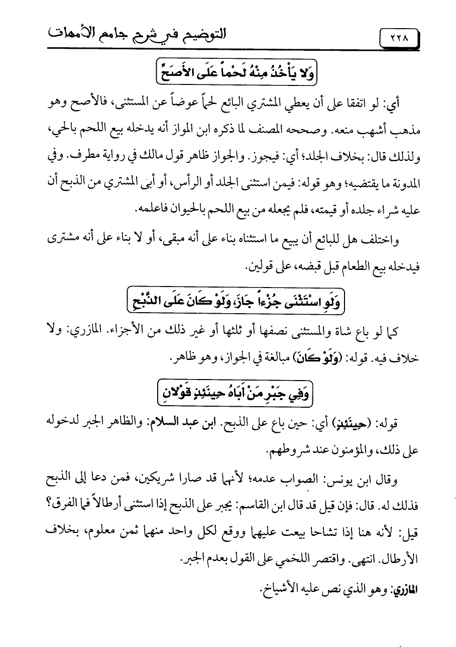 المازري: وهو الذي نص عليه الأشياخ.