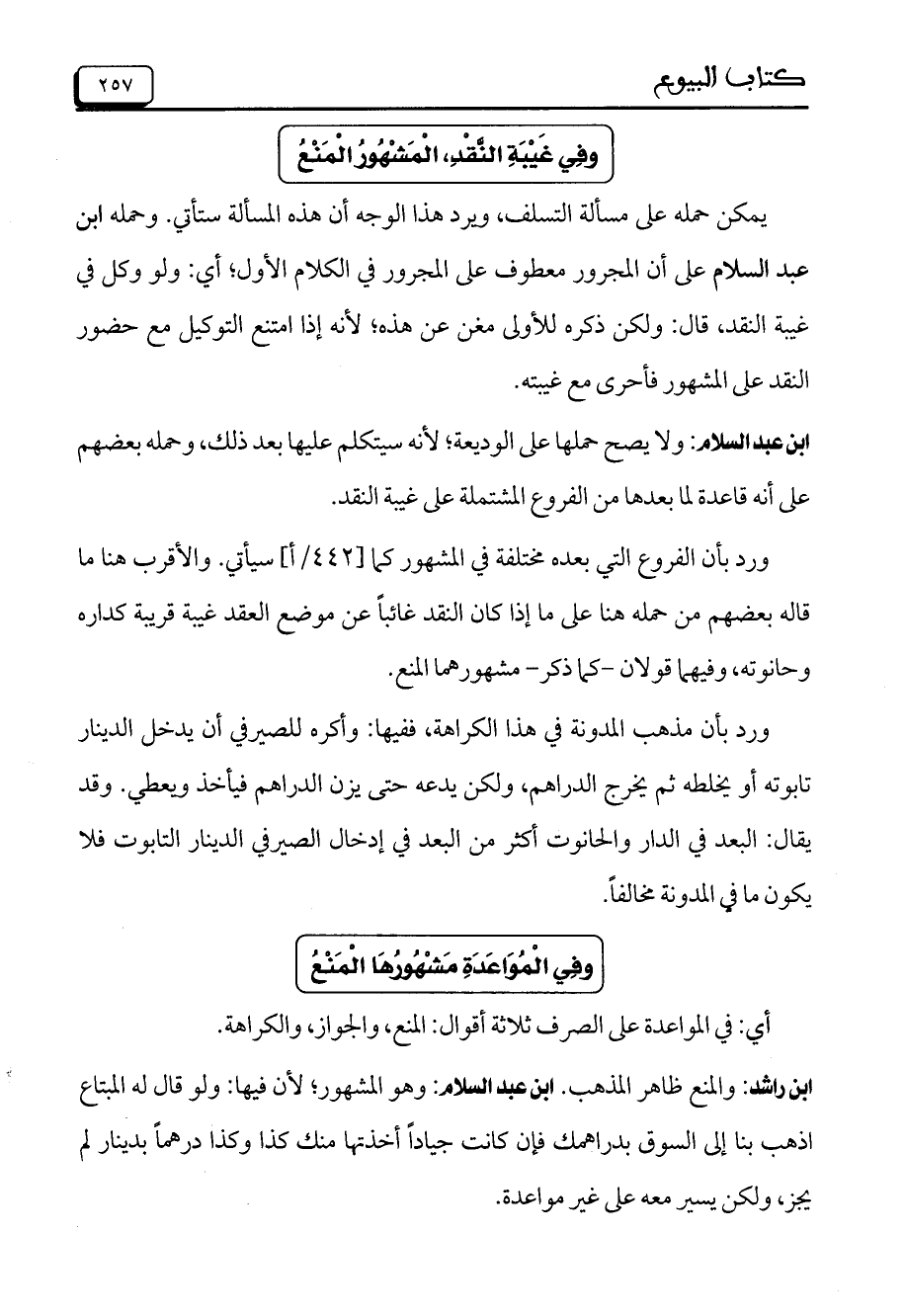 ابن عبد السلام: ولا يصح حملها على الوديعة، لأنه سيتكلم عليها بعد ذلك، وحمله بعضهم على أنه قاعدة لما بعدها من الفروع المشتملة على غيبة النقد.