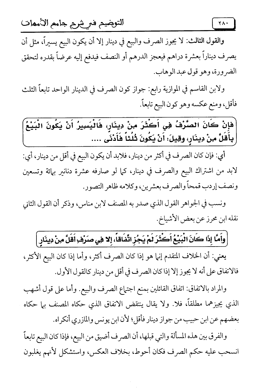 والفرق بين هذه المسألة والتي قبلها، أن الصرف أضيق من البيع، فإذا كان البيع تابعاً انسحب عليه حكم الصرف فكان أحوط، بخلاف العكس، واستشكل لأنهم يغلبون
