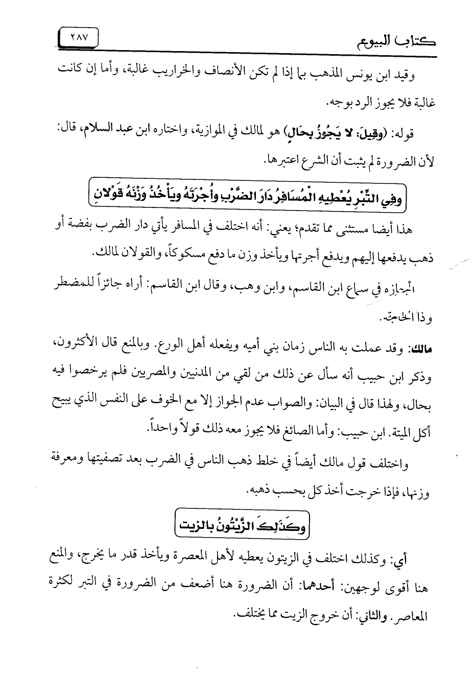 هذا أيضاً مستثنى مما تقدم، يعني: أنه اختلف في المسافر يأتي دار الضرب بفضة أو ذهب يدفعها إليهم ويدفع أجرتها ويأخذ وزن ما دفع مسكوكاً، والقولان لمالك.