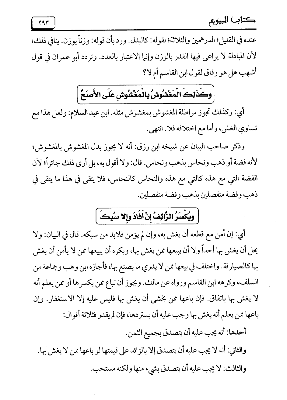 وذكر صاحب البيان عن شيخه ابن رزق: أنه لا يجوز بدل المغشوش بالمغشوش، لأنه فضة أو ذهب ونحاس بذهب ونحاس. قال: ولا أقول به، بل أرى ذلك جائزاً، لأن الفضة التي مع هذه كالتي مع هذه والنحاس كالنحاس، فلا يتقى في هذا ما يتقى في ذهب وفضة منفصلين بذهب وفضة منفصلين.