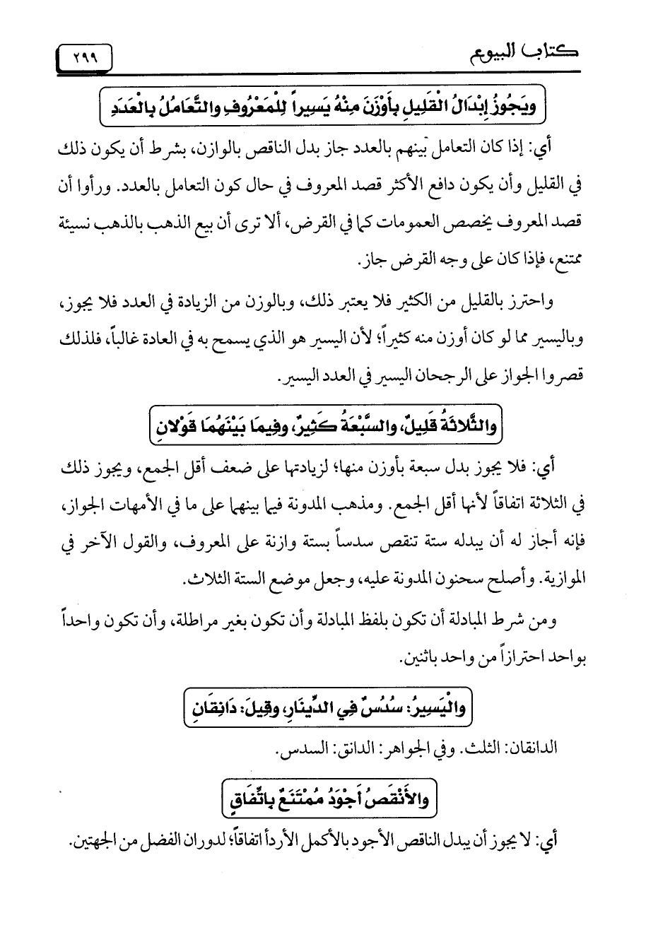 ويجوز إبدال القليل بأوزن منه يسيراً للمعروف والتعامل بالعدد