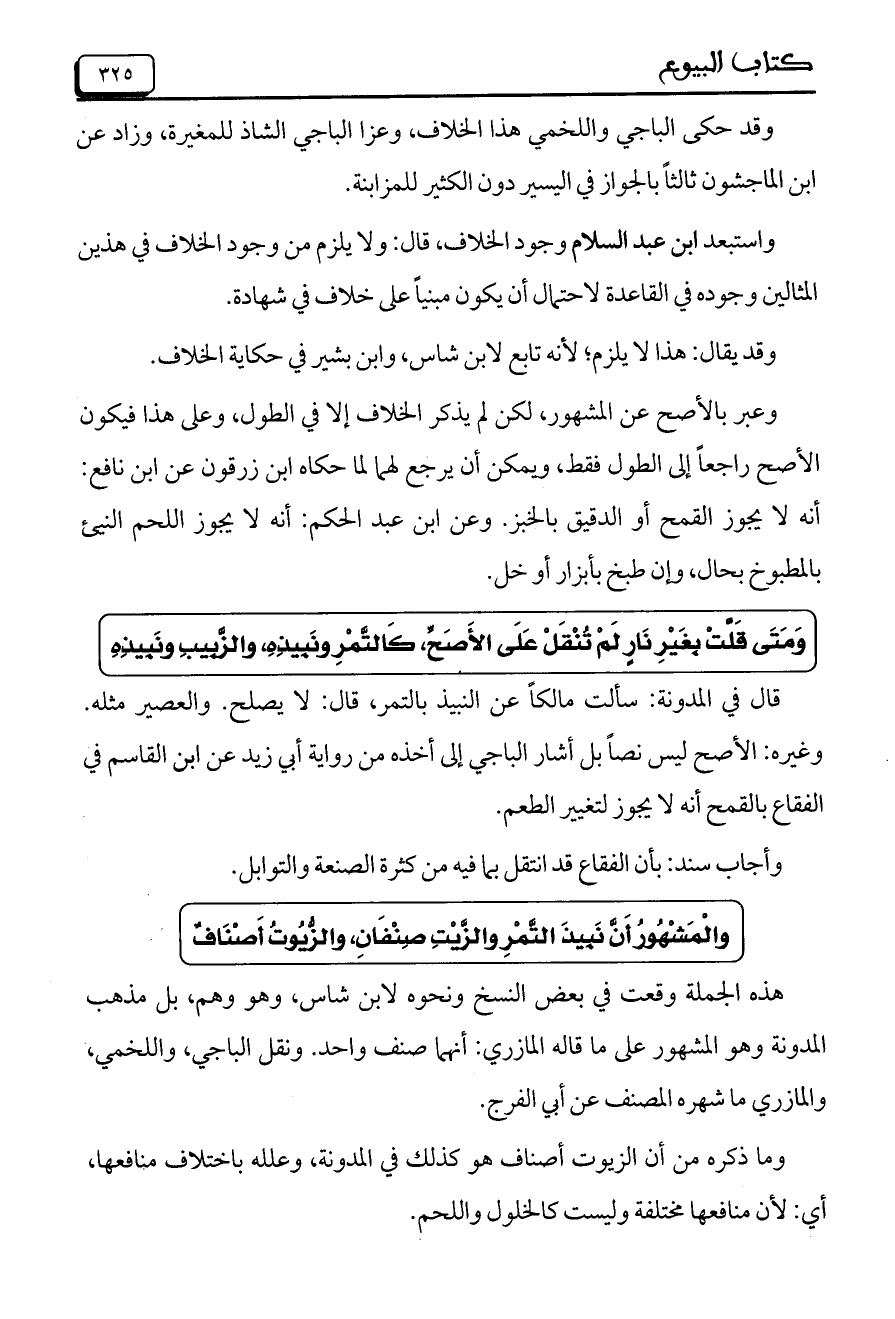 والمشهور أن نبيذ التمر والزيت صنفان، والزيوت أصناف