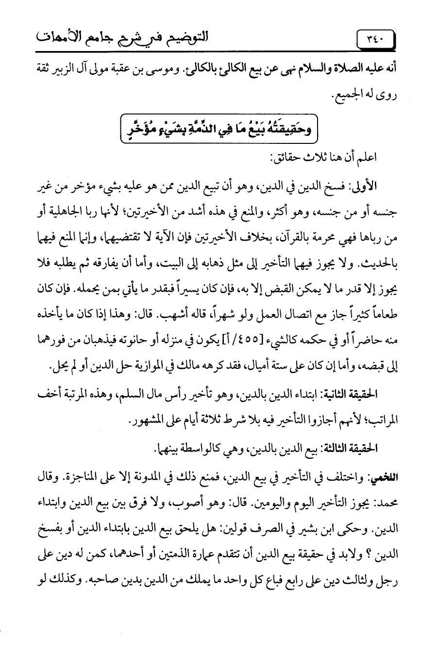 الحقيقة الثانية: ابتداء الدين بالدين، وهو تأخير رأس مال السلم، وهذه المرتبة أخف المراتب، لأنهم أجازوا التأخير فيه بلا شرط ثلاثة أيام على المشهور.