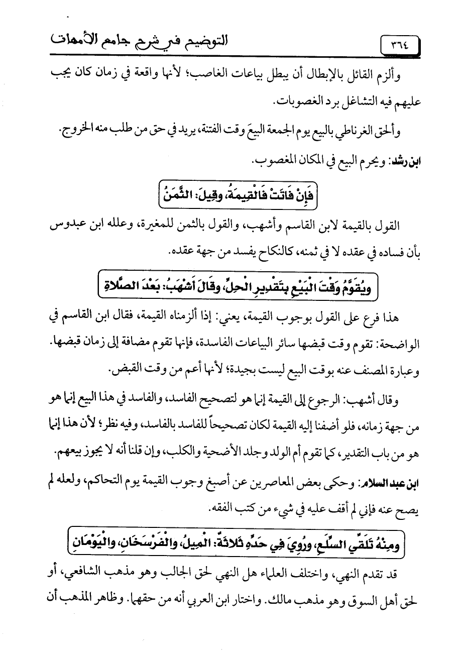 ابن عبد السلام: وحكى بعض المعاصرين عن أصبغ وجوب القيمة يوم التحاكم، ولعله لم يصح عنه فإني لم أقف عليه في شيء من كتب الفقه.