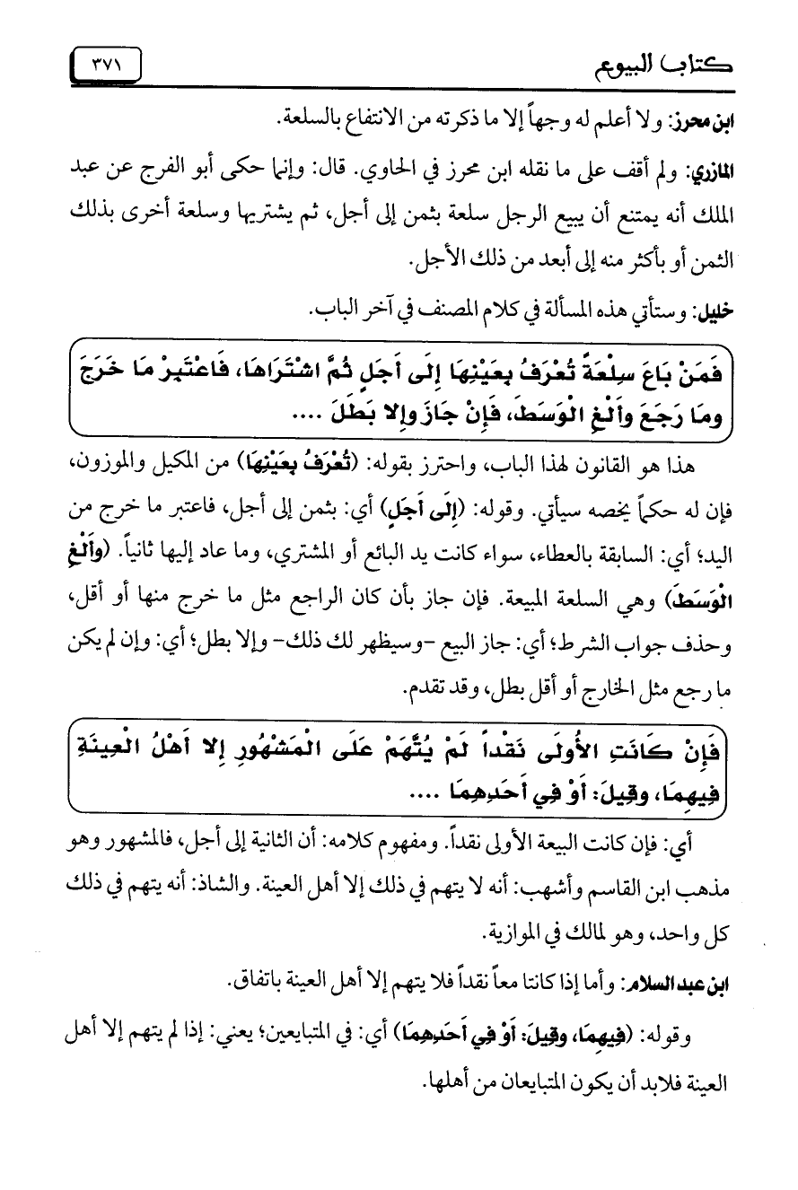 ابن عبد السلام: وأما إذا كانت معاً نقداً فلا يتهم إلا أهل العينة باتفاق.