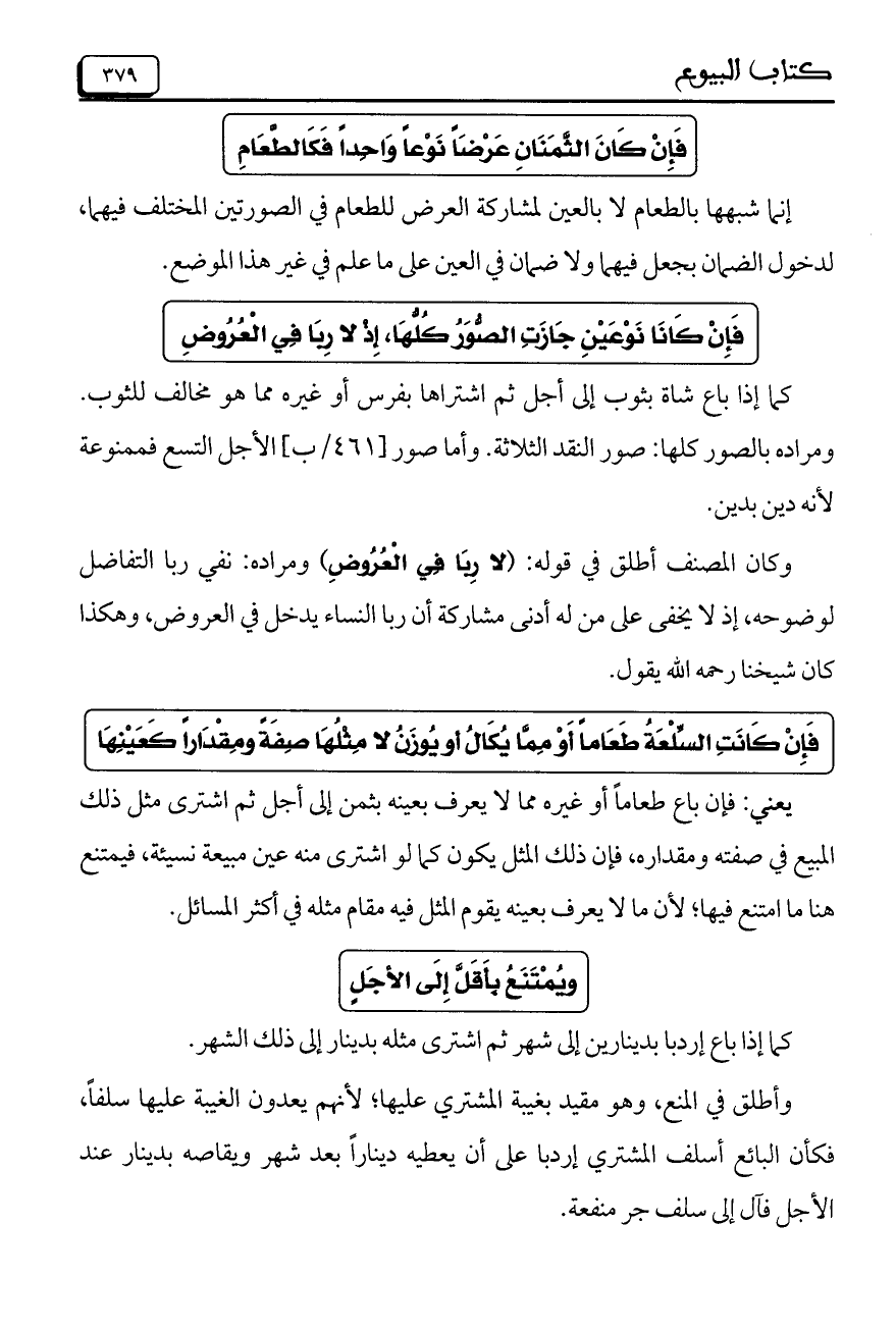 فإن كانت السلعة طعاماً أو مما يكال أو يوزن لا مثلها صفة ومقداراً كعينها
