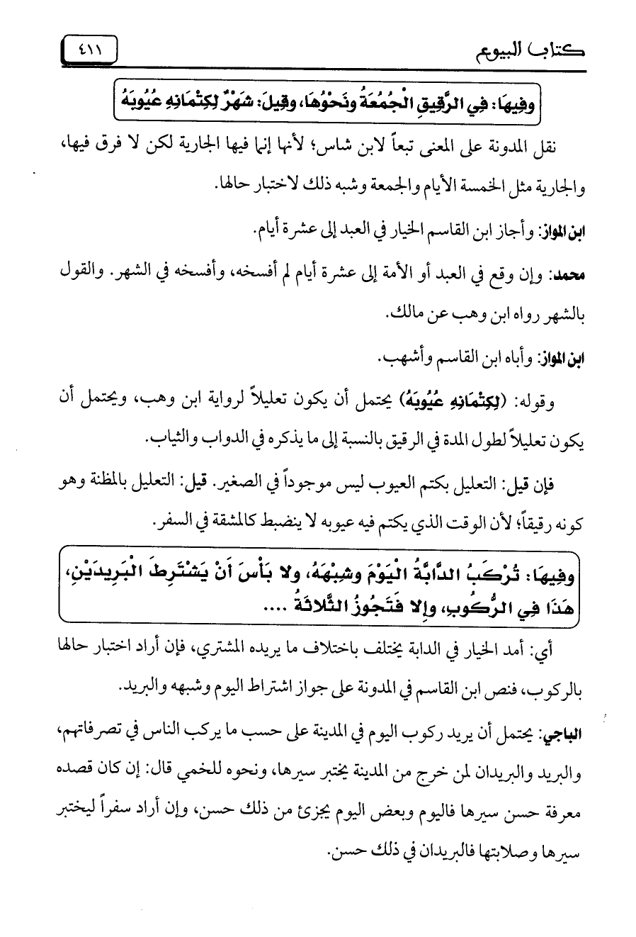وفيها: تركب الدابة اليوم وشبهه، ولا بأس أن يشترط البريدين، هذا في الركوب، وإلا فتجوز الثلاثة ....