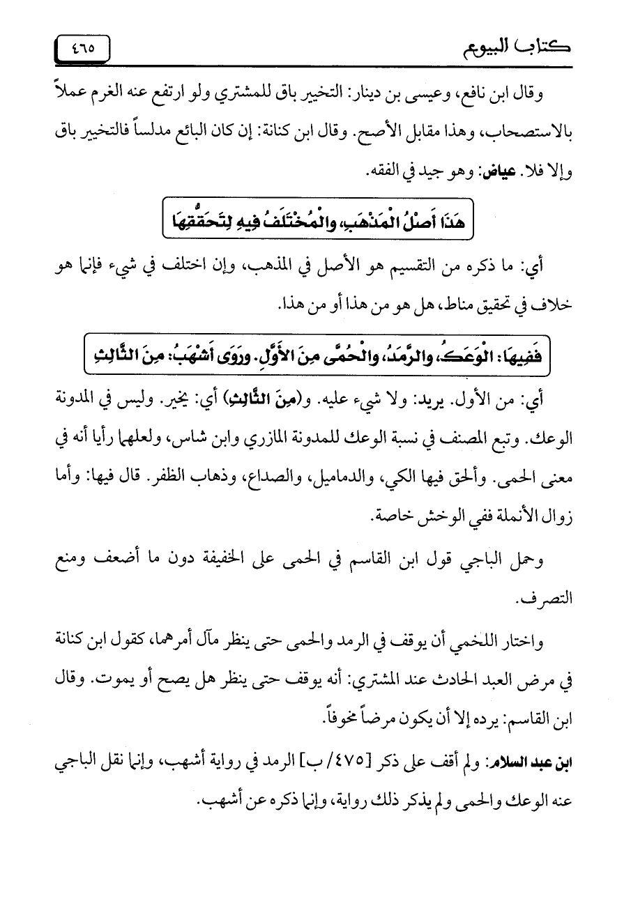 وحمل الباجي قول ابن القاسم في الحمى على الخفيفة دون ما أضعف ومنع التصرف.