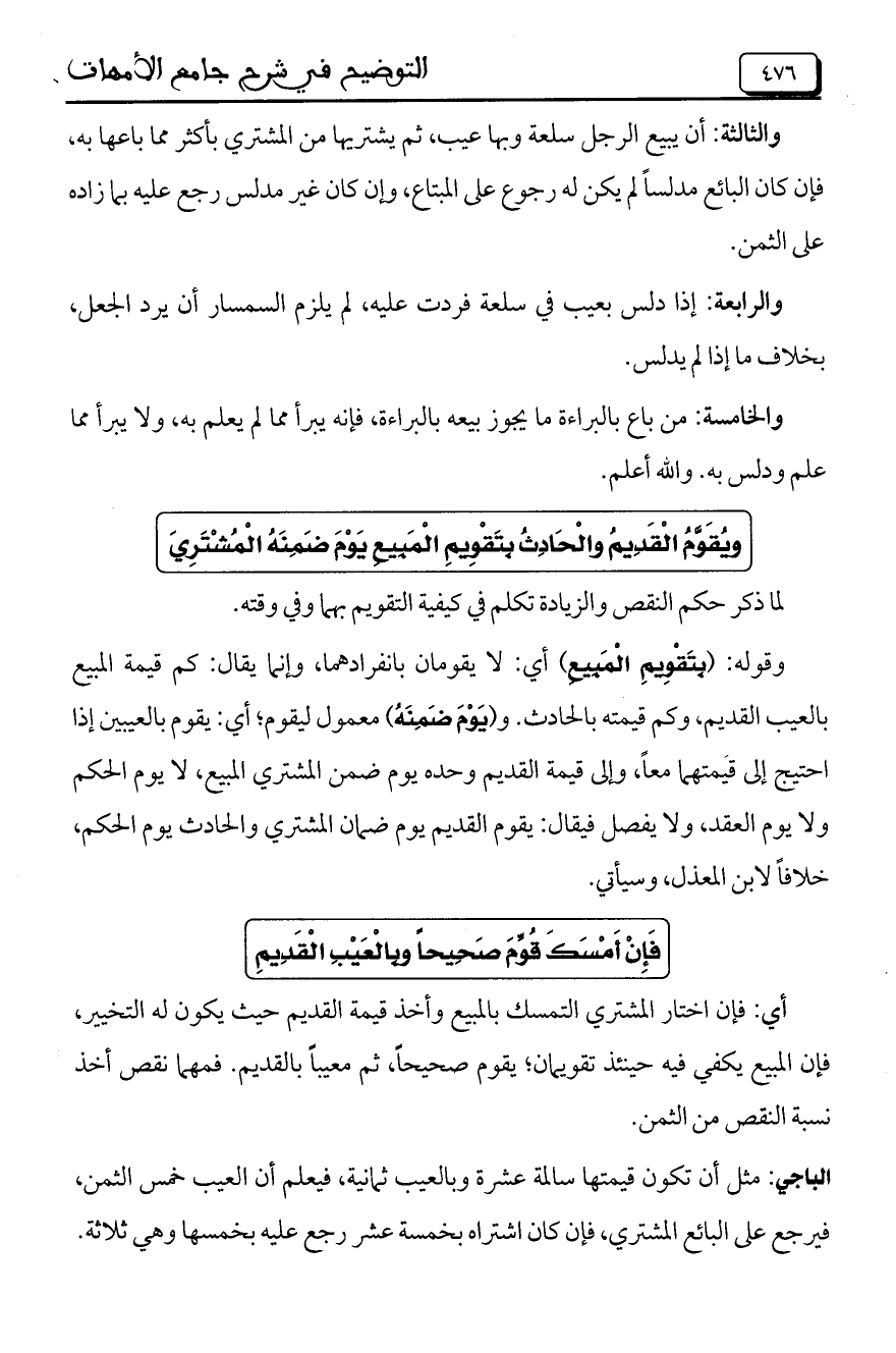 ويقوم القديم والحادث بتقويم المبيع يوم ضمنه المشتري