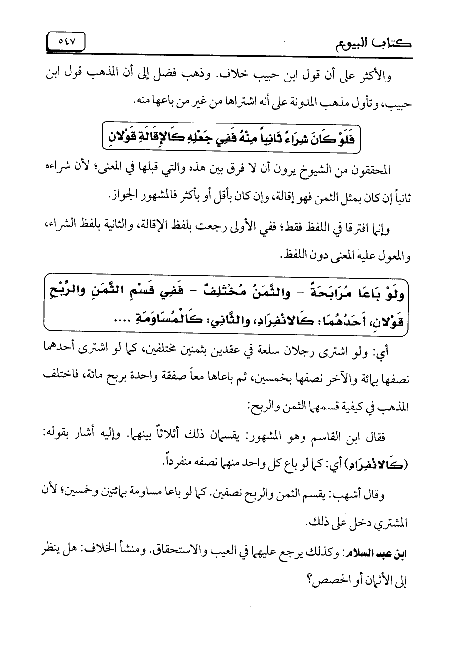 والأكثر على أن قول ابن حبيب خلاف. وذهب فضل إلى أن المذهب قول ابن حبيب، وتأول مذهب المدونة على أنه اشتراها من غير من باعها منه.