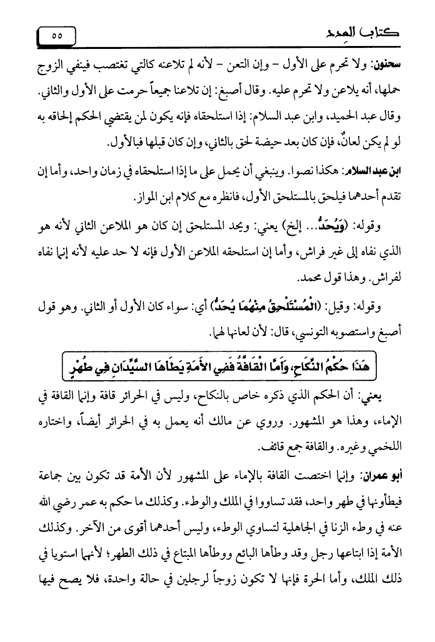 هَذَا حُكْمُ النِّكَاحِ، وَأَمَّا الْقَافَّةُ فَفِي الأَمَةِ يَطَأهَا السَّيِّدَانِ فِي طُهْرٍ