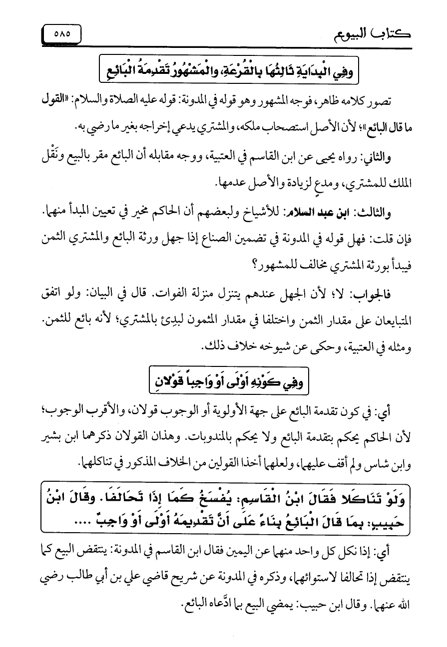 والثاني: رواه يحيي عن ابن القاسم في العتبية، ووجه مقابله أن البائع مقر بالبيع ونَقْل الملك للمشتري، ومدعٍ لزيادة والأصل عدمها.