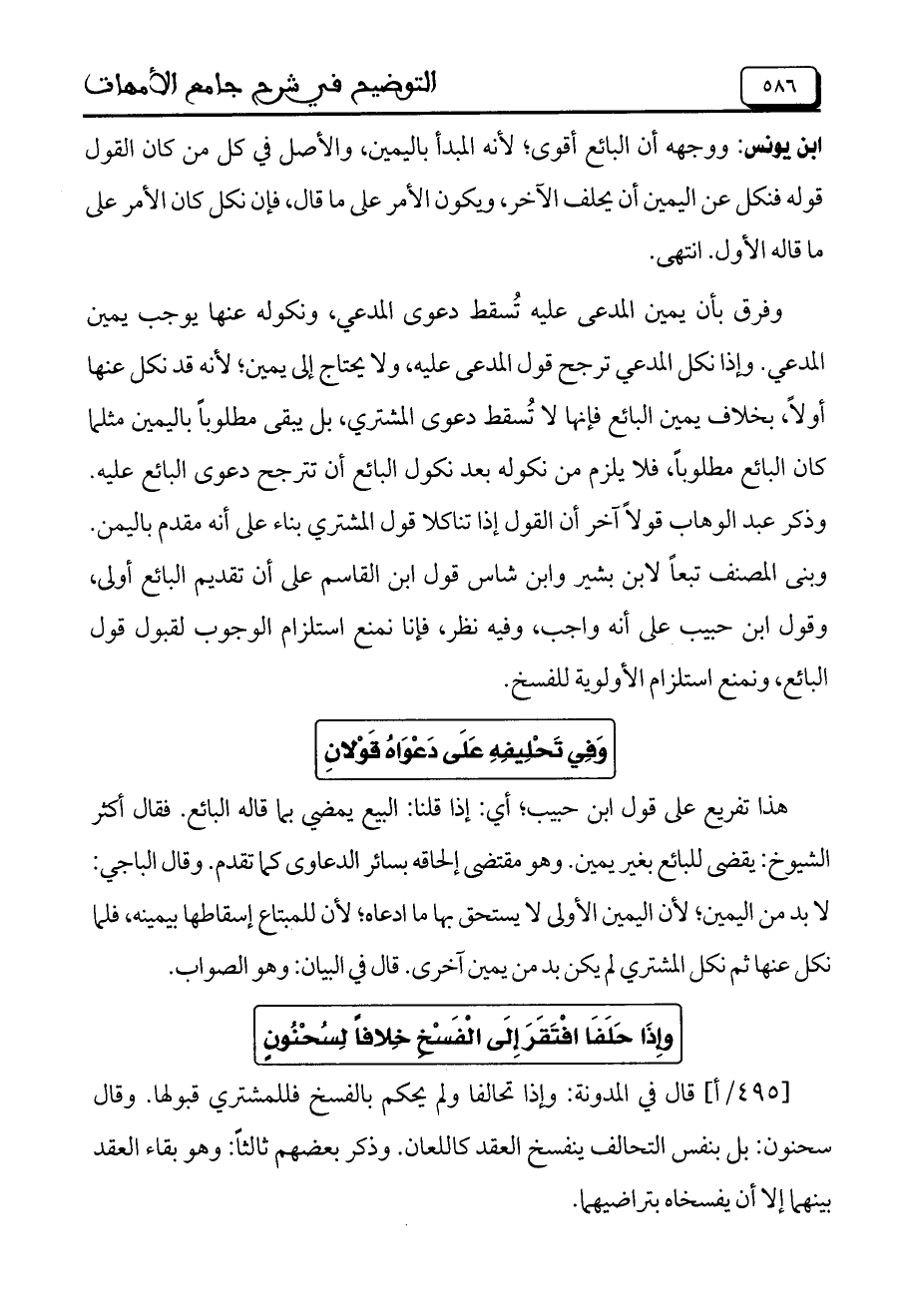وإذا حلفا افتقر على الفسخ خلافاً لسحنون